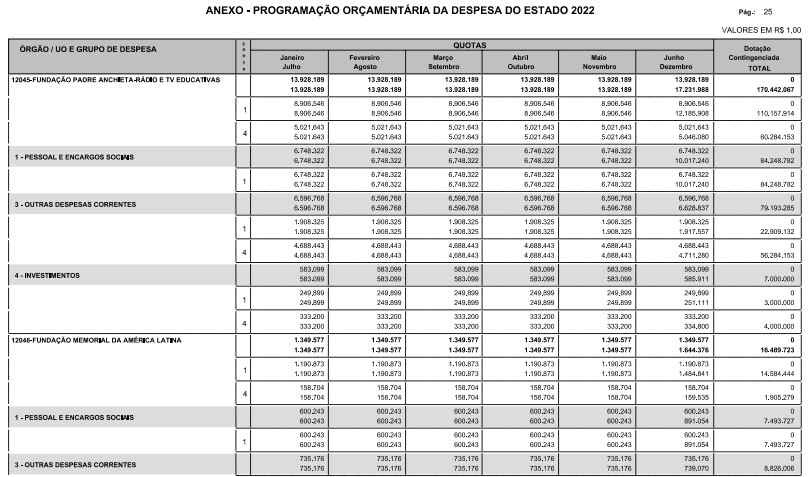 Artigo 9º - Os recursos próprios de autarquias, fundações e sociedades de economia mista, classificadas como dependentes, os recursos vinculados e as dotações disponíveis às Universidades Estaduais e à Fundação de Amparo à Pesquisa do Estado de São Paulo - FAPESP, deverão obedecer à distribuição de 1/12 (um doze avos) em cada quota mensal.