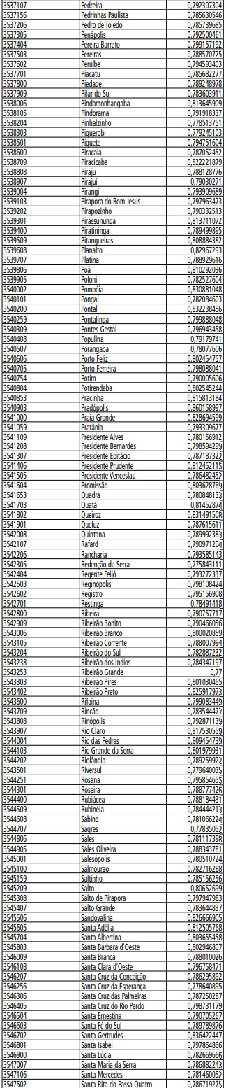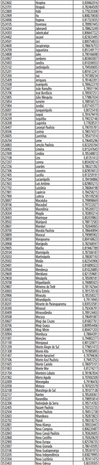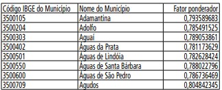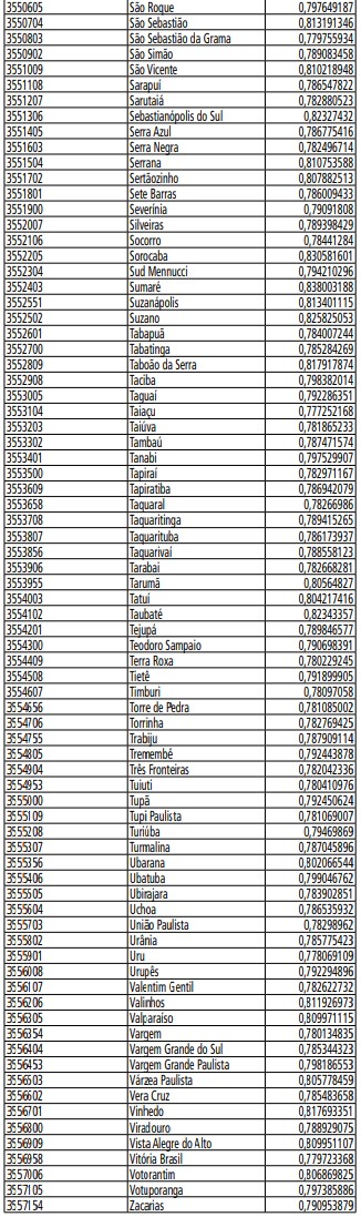 II - os coeficientes a que se referem as alíneas do inciso I deste artigo serão multiplicados pelo Fator de Ponderação por Município, calculado a partir dos dados sobre a renda nos Municípios do Estado de São Paulo da Fundação SEADE de 2017, constantes do Anexo III deste decreto, nos termos do § 2º do artigo 2º da Lei Complementar nº 687, de 7 de outubro de 1992, alterada pela Lei Complementar nº 1.374, de 30 de março de 2022;