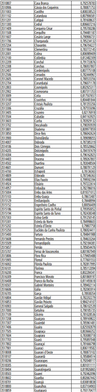 Ri: Renda média mensal no Município i, segundo dados da Fundação SEADE de 2017.