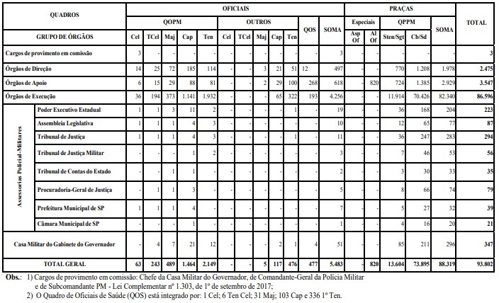 Artigo 1º - O efetivo da Polícia Militar do Estado de São Paulo fica distribuído na conformidade do Quadro de Organização (QO) constante do Anexo que integra este decreto.