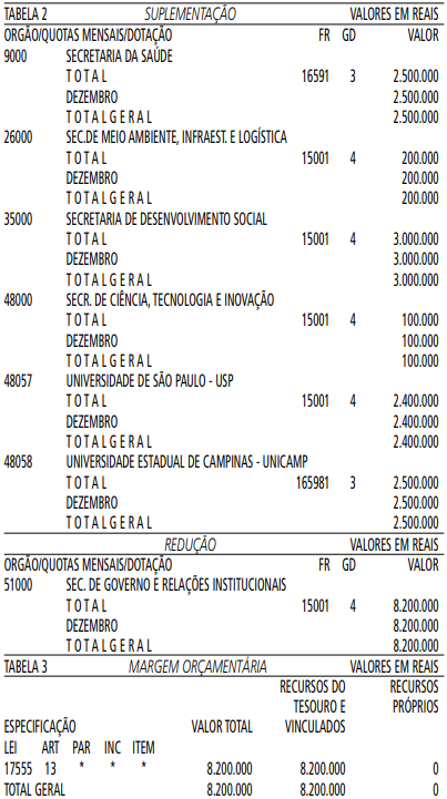 Artigo 3° - Fica alterada a Programação Orçamentária da Despesa do Estado, estabelecida pelo Anexo, de que trata o artigo 8°, do Decreto n° 67.447, de 13 de janeiro de 2023, de conformidade com a Tabela 2, anexa.