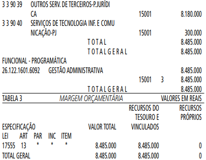 Artigo 2° - O crédito aberto pelo artigo anterior será coberto com recursos a que alude o inciso III, do § 1°, do artigo 43, da Lei federal n° 4.320, de 17 de março de 1964, de conformidade com a legislação discriminada na Tabela 3, anexa.