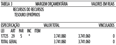 Artigo 2° - O crédito aberto pelo artigo anterior será coberto com recursos a que alude o inciso III, do § 1°, do artigo 43, da Lei federal n° 4.320, de 17 de março de 1964, de conformidade com a legislação discriminada na Tabela 3, anexa.