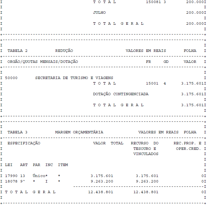 Artigo 2° - O crédito aberto pelo artigo anterior será coberto com recursos a que aludem os incisos I e III, do § 1°, do artigo 43, da Lei federal n° 4.320, de 17 de março de 1964, de conformidade com a legislação discriminada na Tabela 3, anexa.