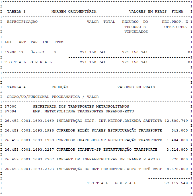 Artigo 2° - O crédito aberto pelo artigo anterior será coberto com recursos a que alude o inciso III, do § 1°, do artigo 43, da Lei federal n° 4.320, de 17 de março de 1964, de conformidade com a legislação discriminada na Tabela 3, anexa.