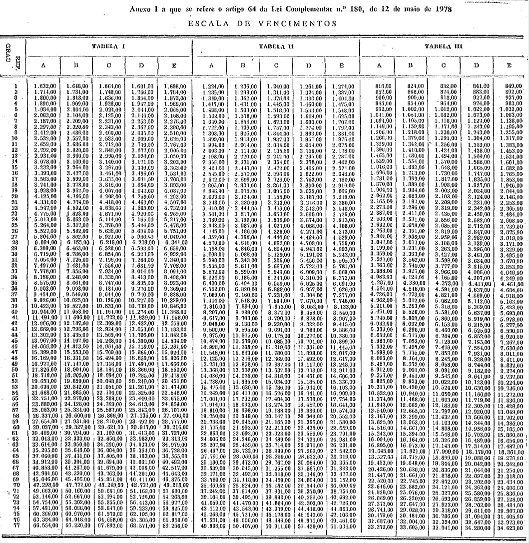 I - escala de referências de vencimentos e salários de que trata o inciso I do artigo 5.º da Lei Complementar n.º 152, de 31 de março de 1977;