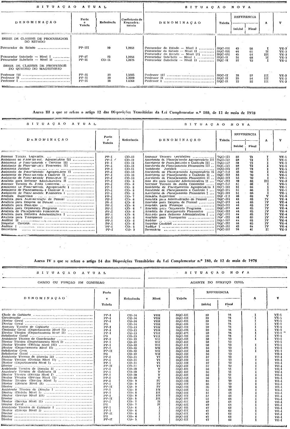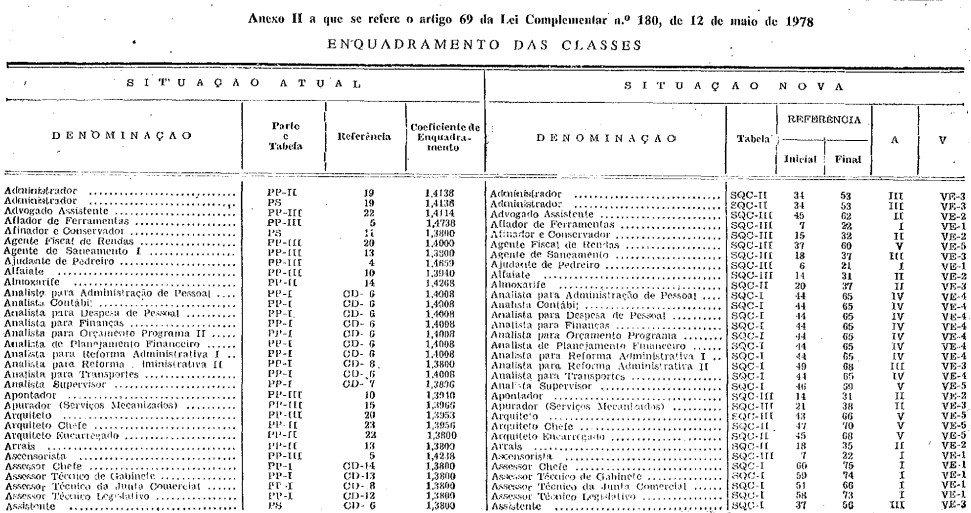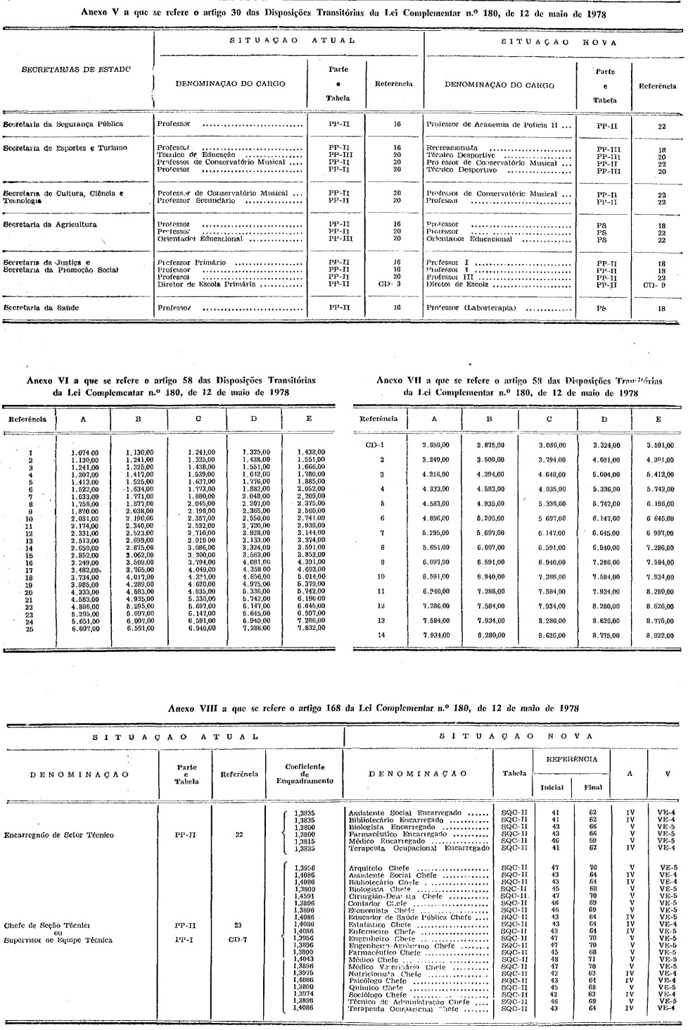 No Anexo II a que se refere o artigo 69 da Lei Complementar n.º 180, de 12 de maio de 1978
