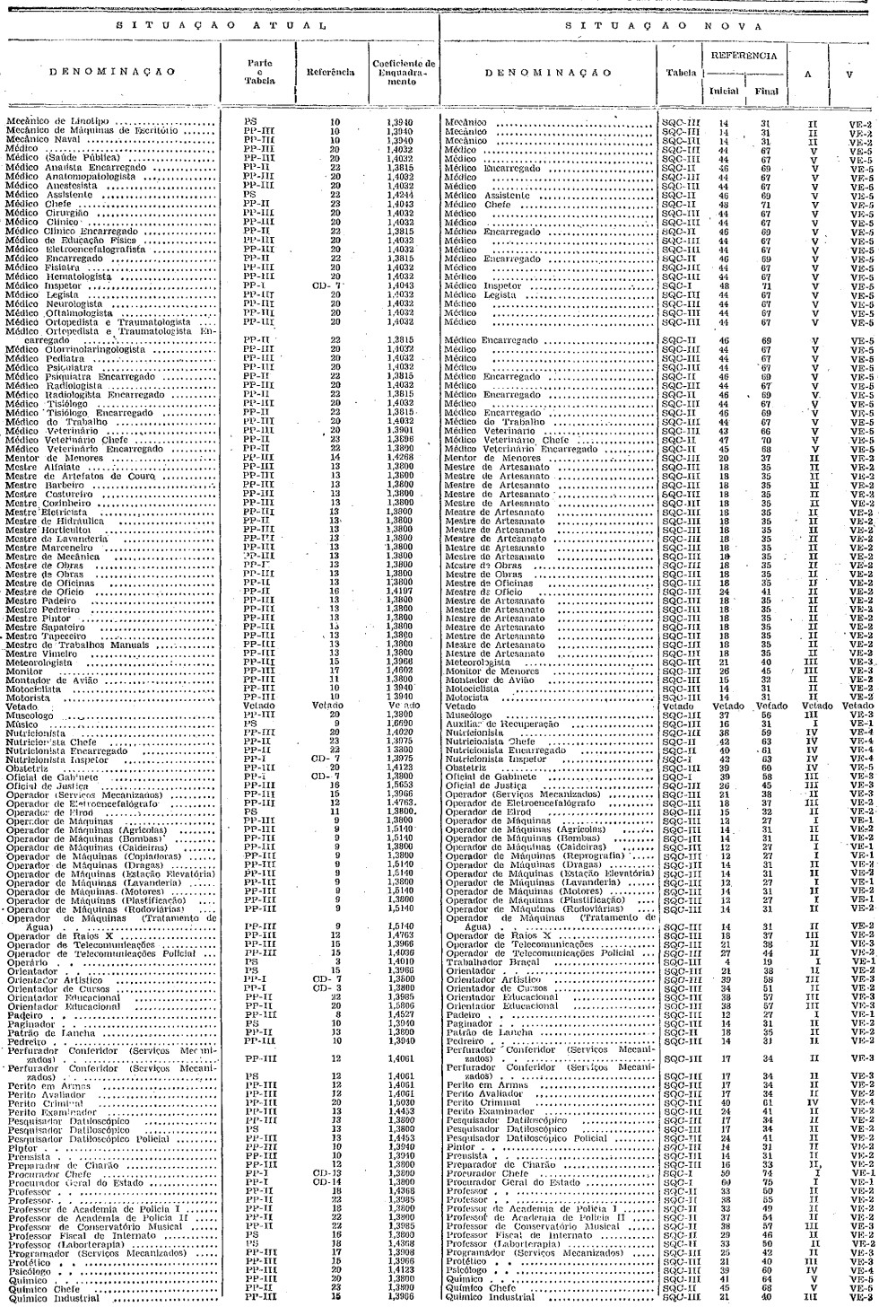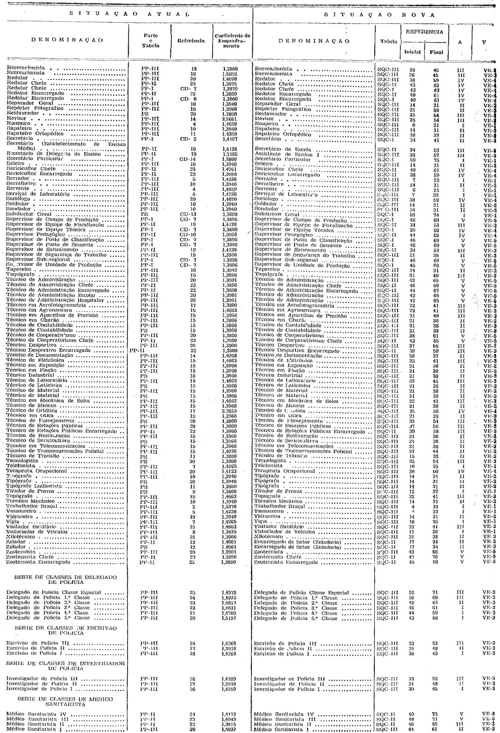 § 1.º - O Subquadro de Cargos Públicos (SQC) compreende as seguintes tabelas:
