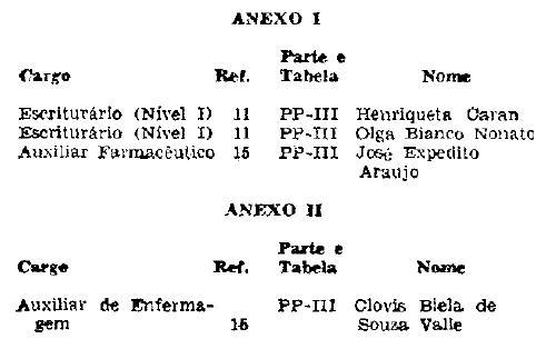 Artigo 1º - Ficam incluídos nos Anexos da Lei Complementar nº 146, de 22 de setembro de 1976 Secretaria da Saúde - os cargos de Atendente, antiga referência «7», da Tabela III, da Parte Permanente, ocupados pelos funcionários indicados neste artigo, na seguinte conformidade: