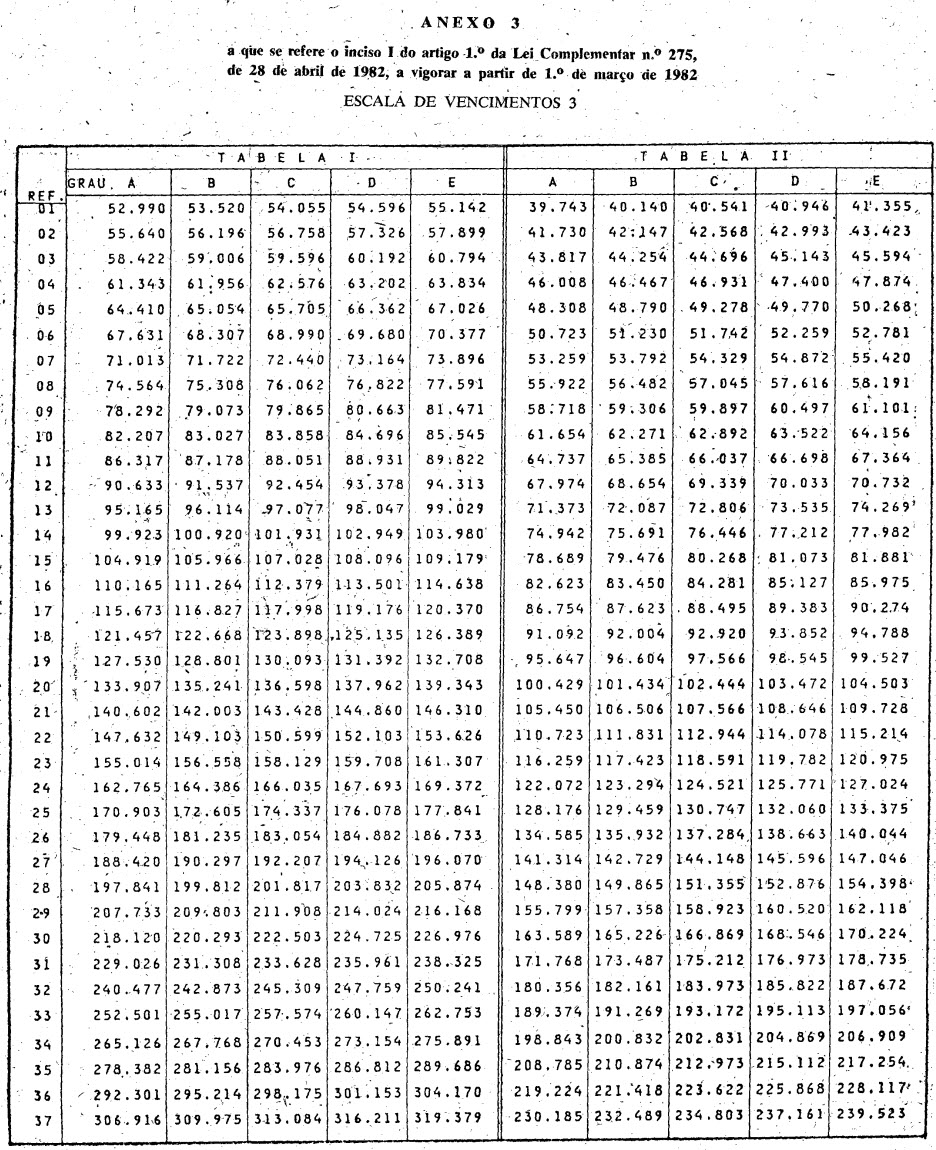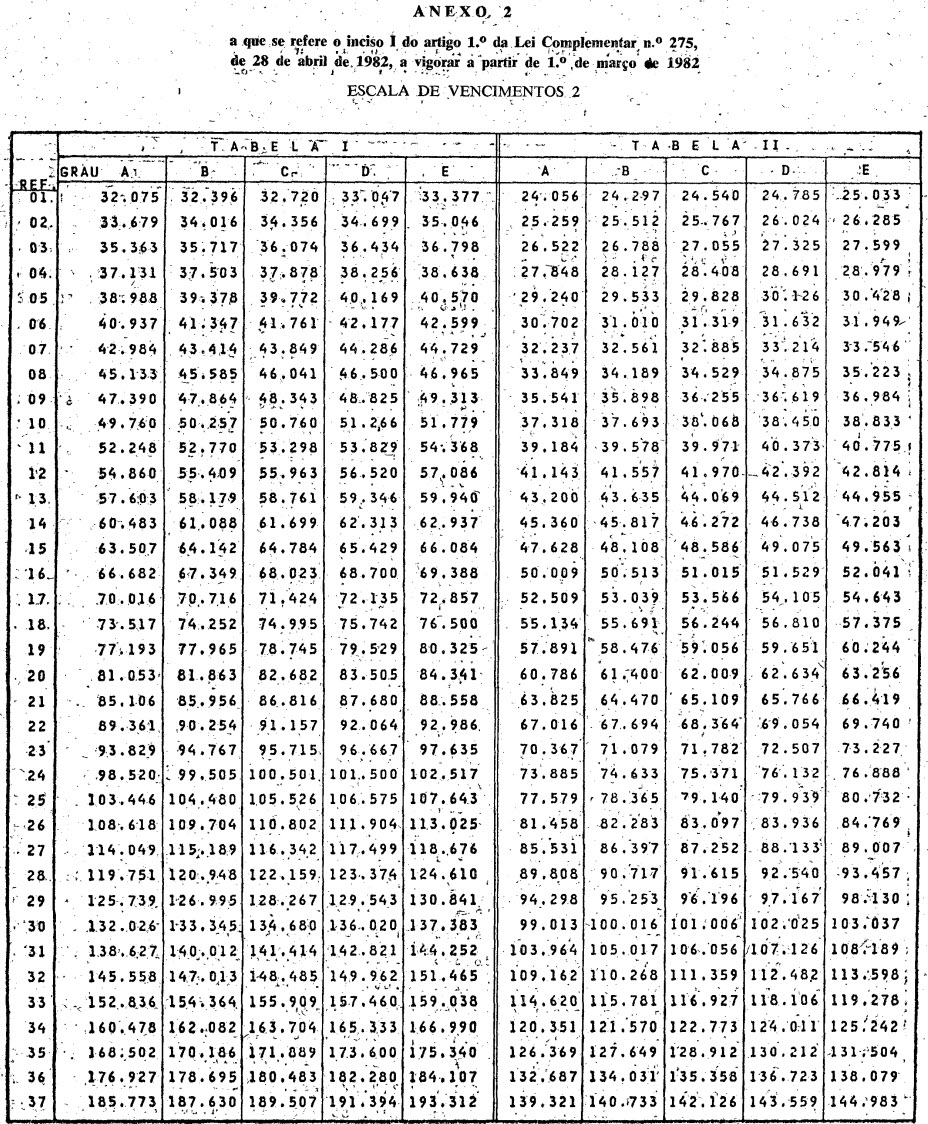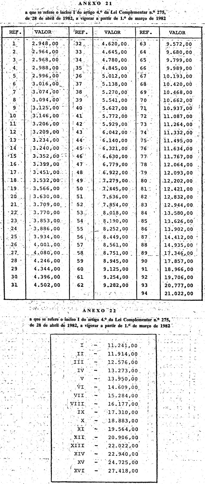 A que se refere o inciso II do artigo 1.º da Lei Complementar n.º 275, de 28 de abril de 1982, a vigorar a partir de 1.º de Julho de 1982.