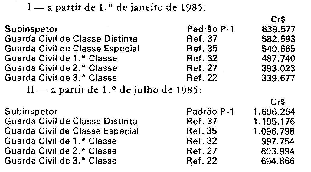 I - a partir de 1º de Janeiro de 1985, para Cr$ 2.606.526 (dois milhões, seiscentos e seis mil, quinhentos e vinte e seis cruzeiros);