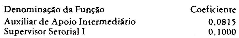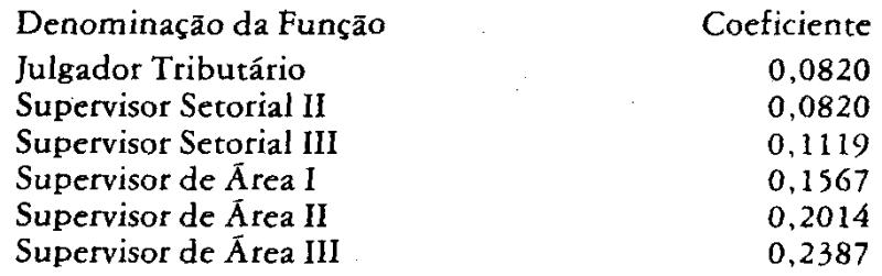Artigo 12 - O valor da Gratificação de Atividade de que trata o artigo anterior será o resultante da aplicação dos seguintes coeficientes: