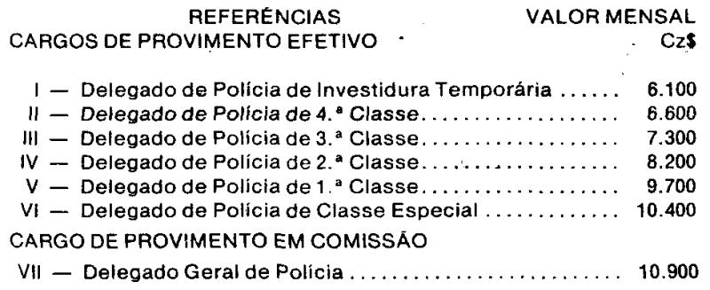 Artigo 2º - Os vencimentos a que se refere o artigo anterior correspondem aos valores fixados na seguinte escala de referências:
