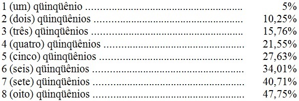 seguintes percentuais sobre o valor do vencimento do cargo acrescido da