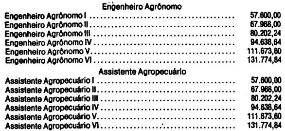Reajusta os valores da Escala de Vencimentos aplicável à série de classes de Engenheiro Agrônomo e Assistente Agropecuário