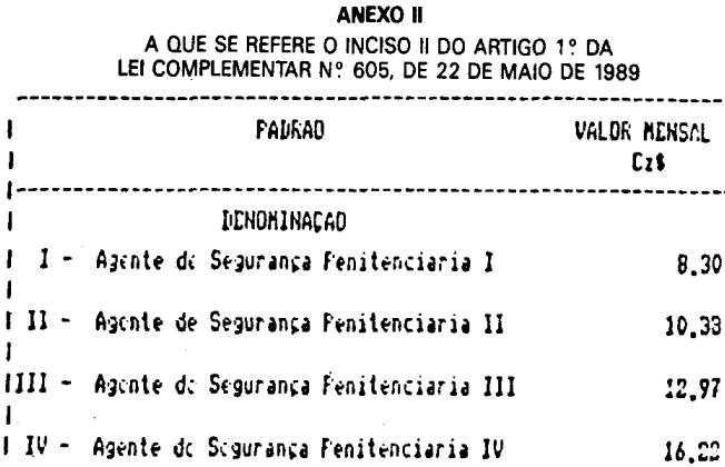 II - Anexo II, correspondente aos integrantes da série de classes de Agente de Segurança Penitenciária (§ 1º do artigo 1º da Lei Complementar nº 548, de 24 de junho de 1988);