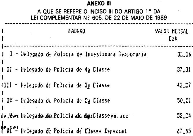 III - Anexo III, correspondente aos integrantes da carreira de Delegado de Policia (artigo 2º da Lei Complementar nº 545, de 24 de junho de 1988); e
