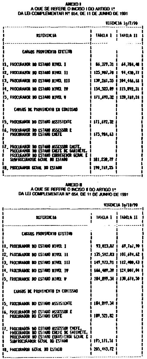 Artigo 1º - Os vencimentos dos integrantes da carreira de Procurador do Estado e dos cargos em comissão privativos de Procurador do Estado, de que trata o artigo 2º da Lei Complementar nº 560, de 15 de julho de 1988, em decorrência de reclassificação da carreira, passam a ser fixados de acordo com os Anexos I a V, na seguinte conformidade: