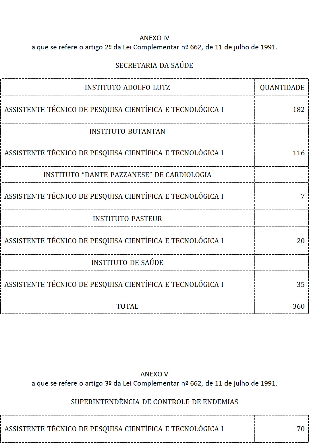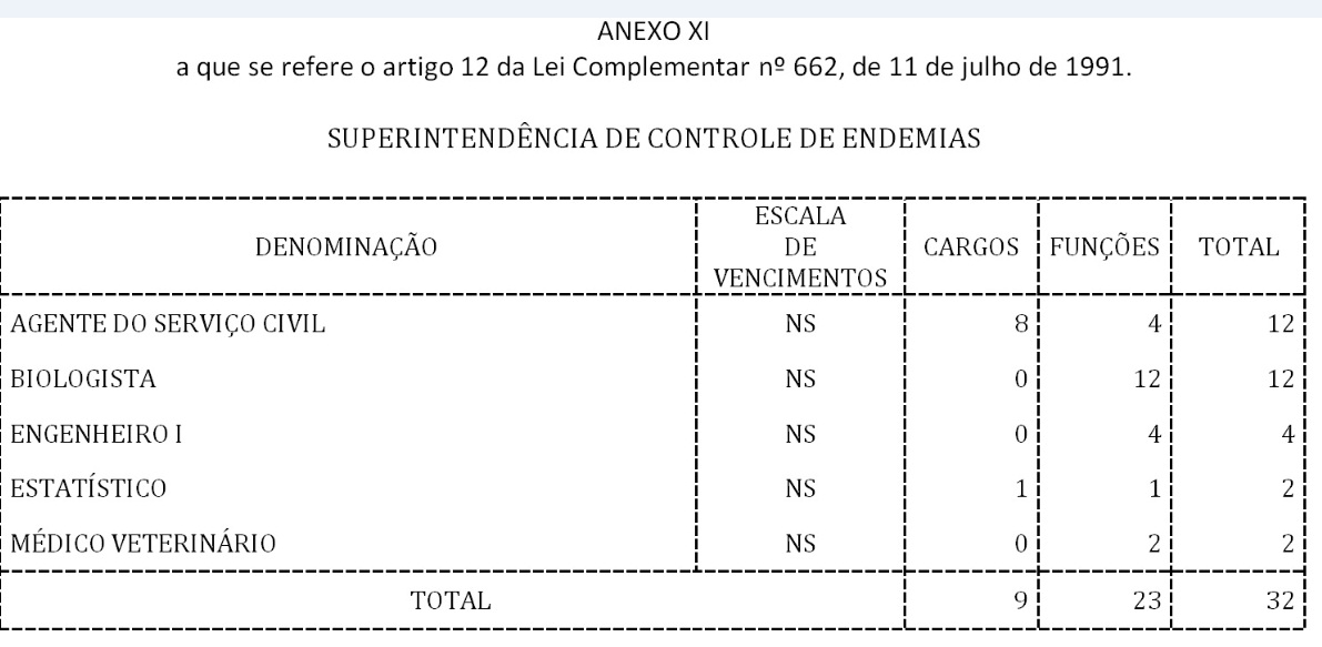 Artigo 3° - Ficam criados, na Tabela III (SQC-III) dos Subquadros de Cargos Públicos dos Quadros da Superintendência de Controle de Endemias - SUCEN, cargos das classes de que trata o artigo 1° desta lei complementar constantes do Anexo V.