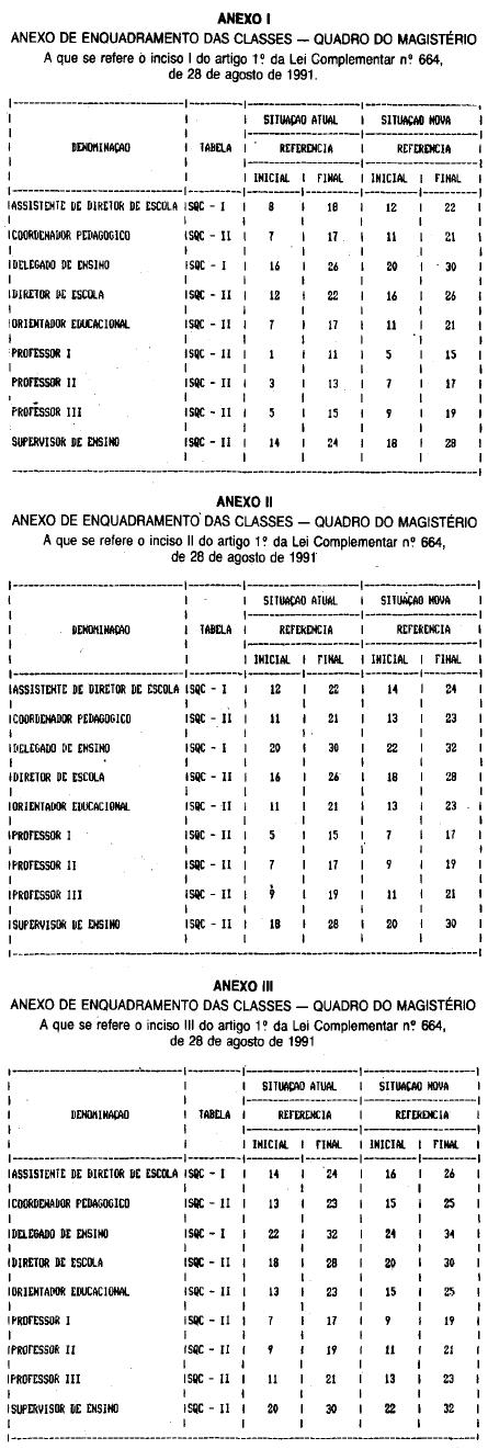 Artigo 1º - A série de classes de docentes e as classes de especialistas de educação do Quadro do Magistério, a que se refere o artigo 1º da Lei Complementar nº 645, de 27 de dezembro de 1989, em decorrência de reclassificação, mantidas a denominação e a tabela, ficam com as referências iniciais e finais fixadas na seguinte conformidade: