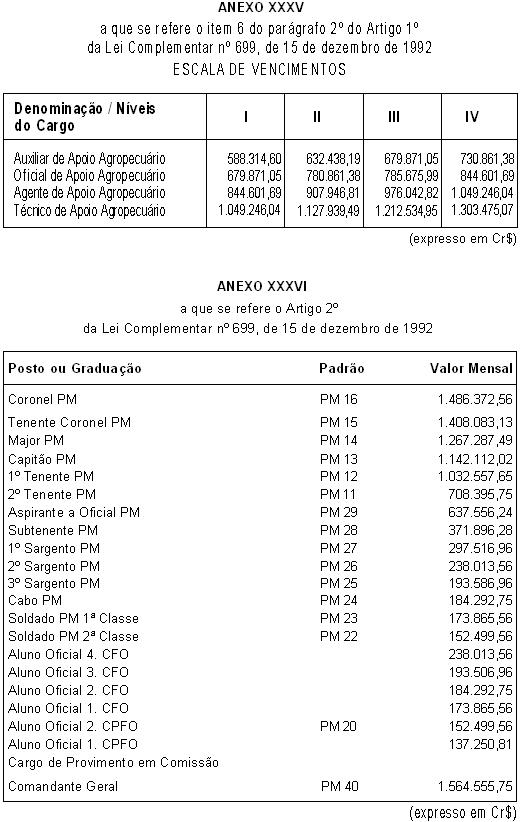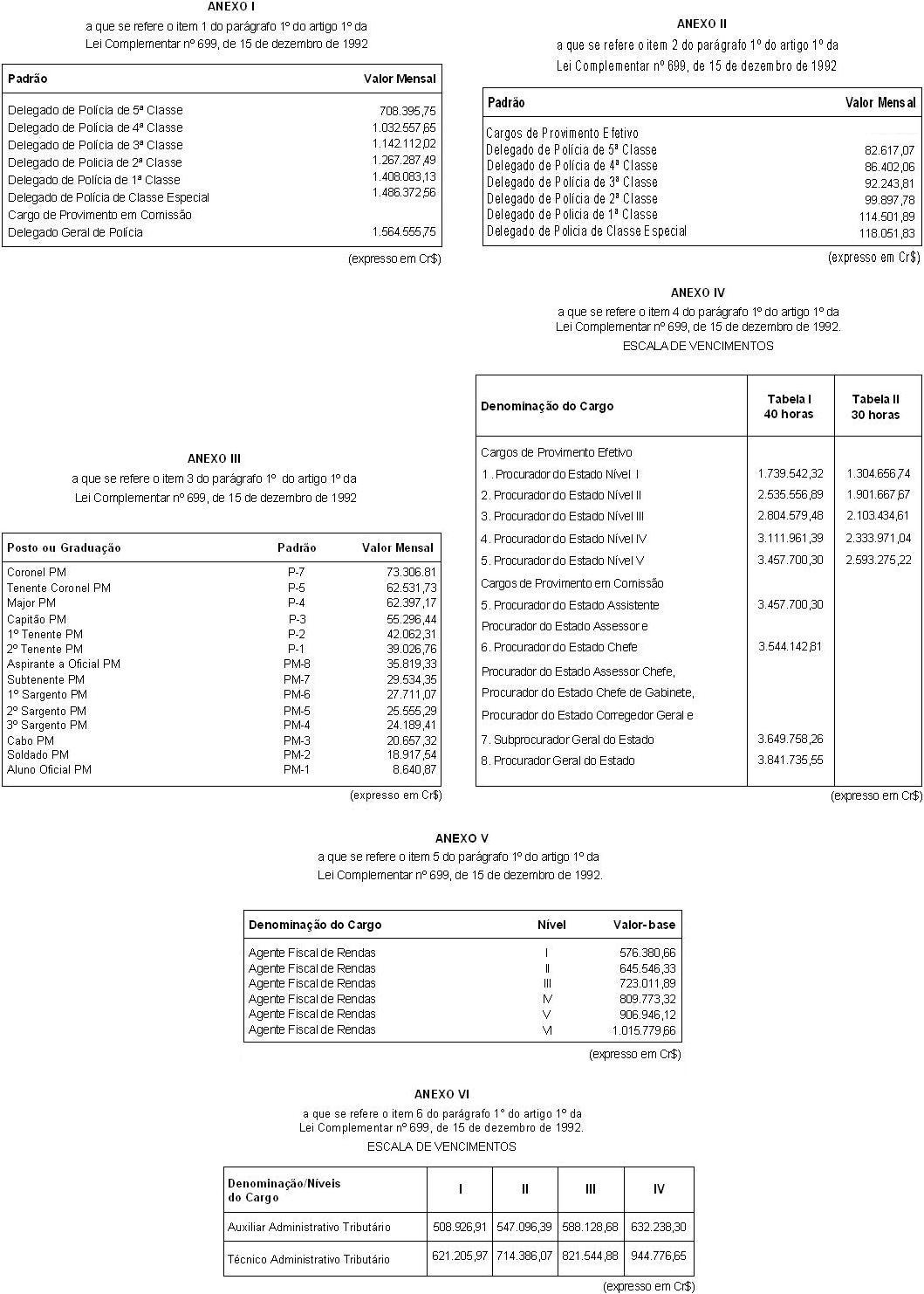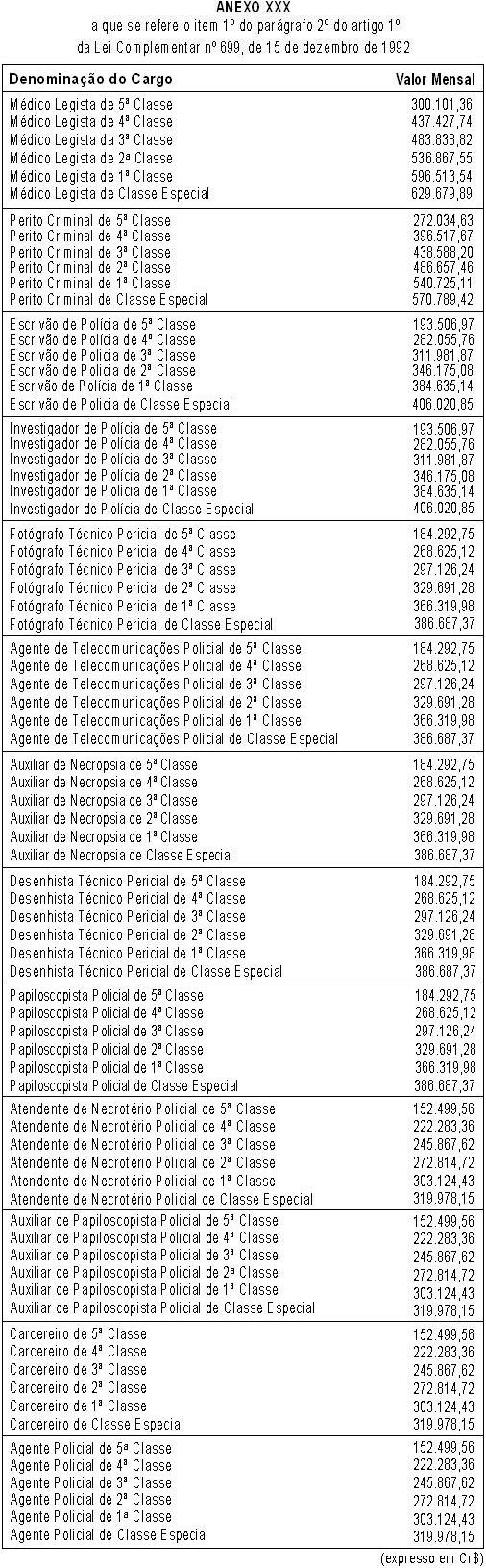 1. Anexo XXX - correspondente aos integrantes das carreiras policiais civis, de que trata o artigo 2º da Lei Complementar nº 675, de 5 de junho de 1992;