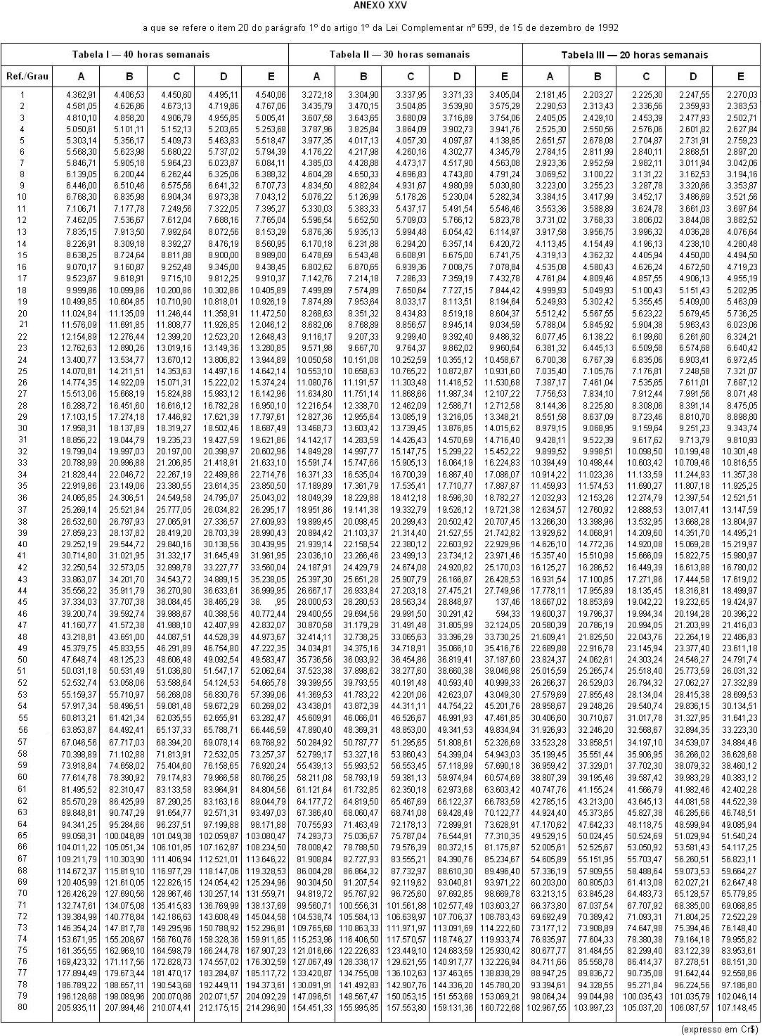 20. Anexo XXV - correspondente aos funcionários, servidores e inativos que optaram pela permanência na situação retribuitória anterior à Lei Complementar nº 247, de 6 de abril de 1981;