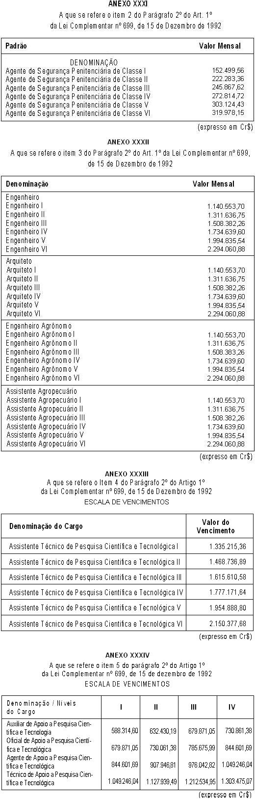 2. Anexo XXXI - correspondente aos integrantes da série de classe de Agente de Segurança Penitenciária, de que trata o artigo 2º da Lei Complementar nº 681, de 22 de julho de 1992;