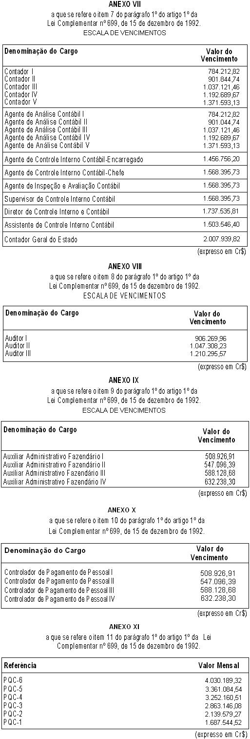 7. Anexo VII - correspondente aos integrantes da série de classes de Contador e dos Cargos em Comissão, de que trata o § 1º do artigo 12 da Lei Complementar nº 549, de 24 de julho de 1988;