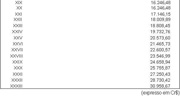 II - Cr$ 79.724,19 (setenta e nove mil, setecentos e vinte e quatro cruzeiros e dezenove centavos), quando em jornada de 30 (trinta) horas semanais de trabalho;