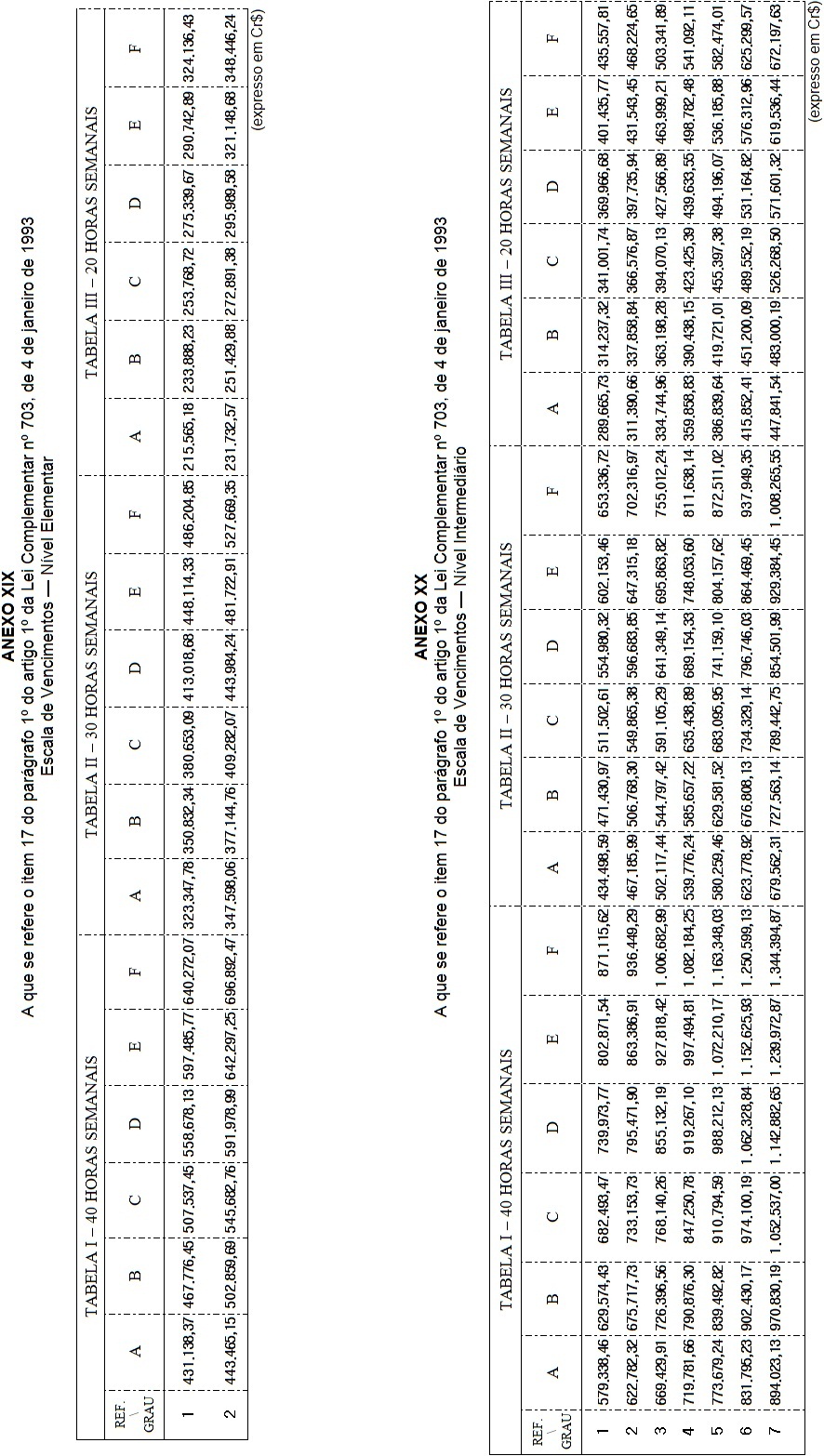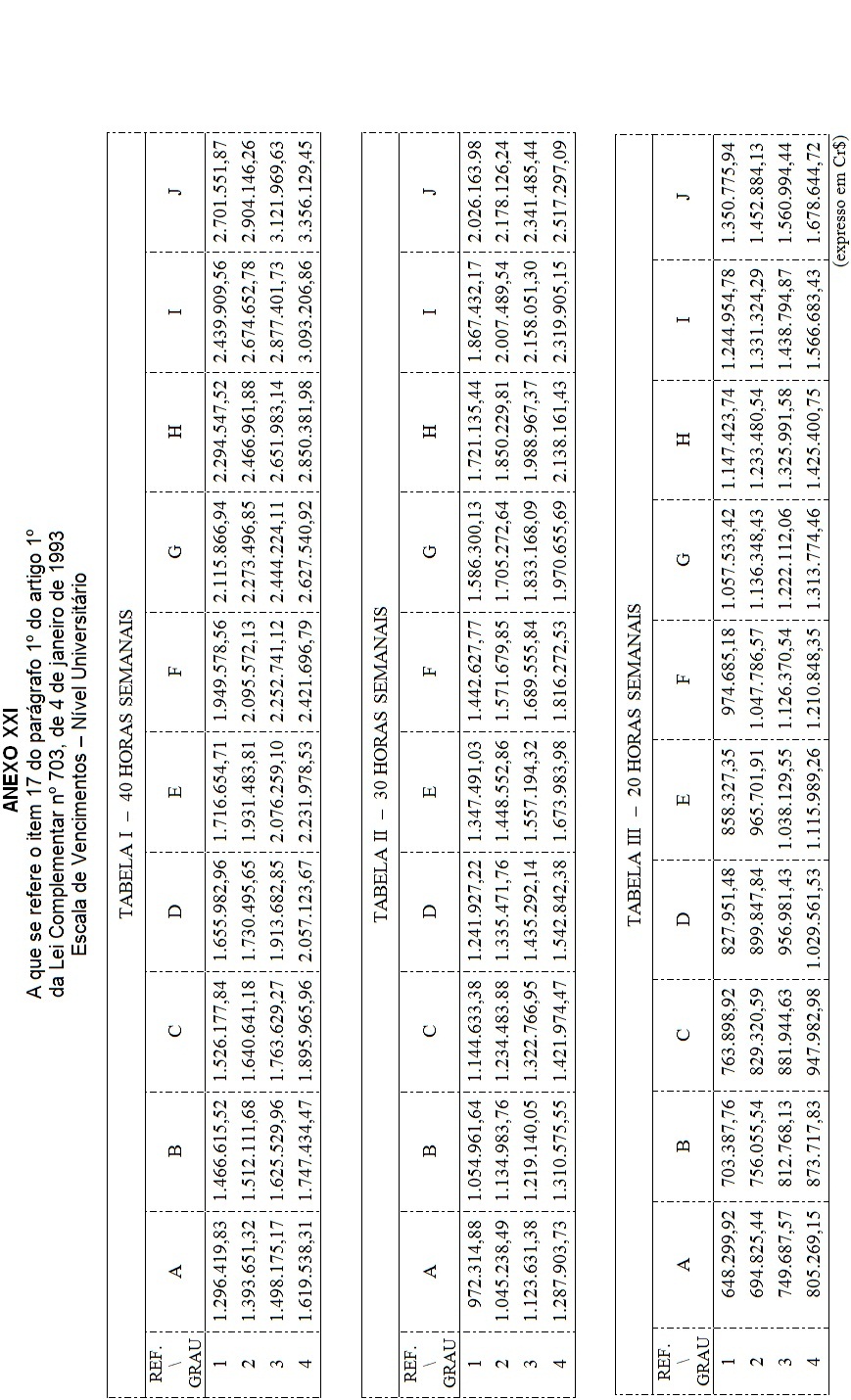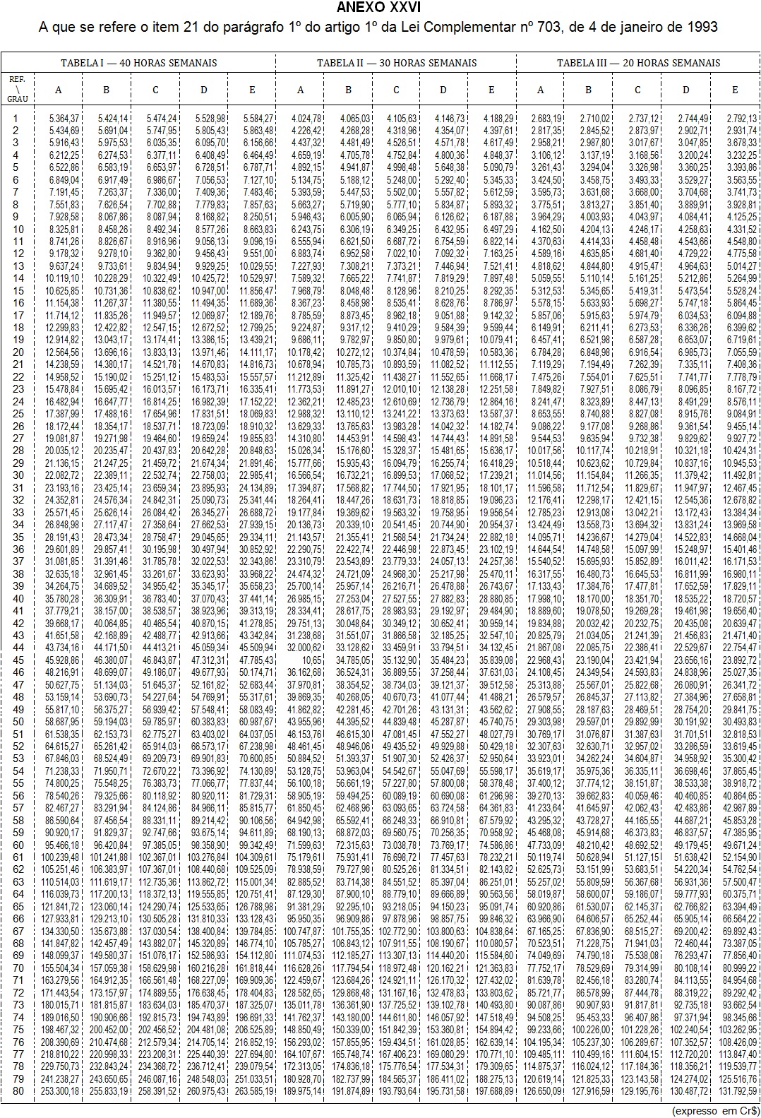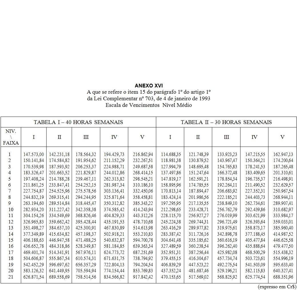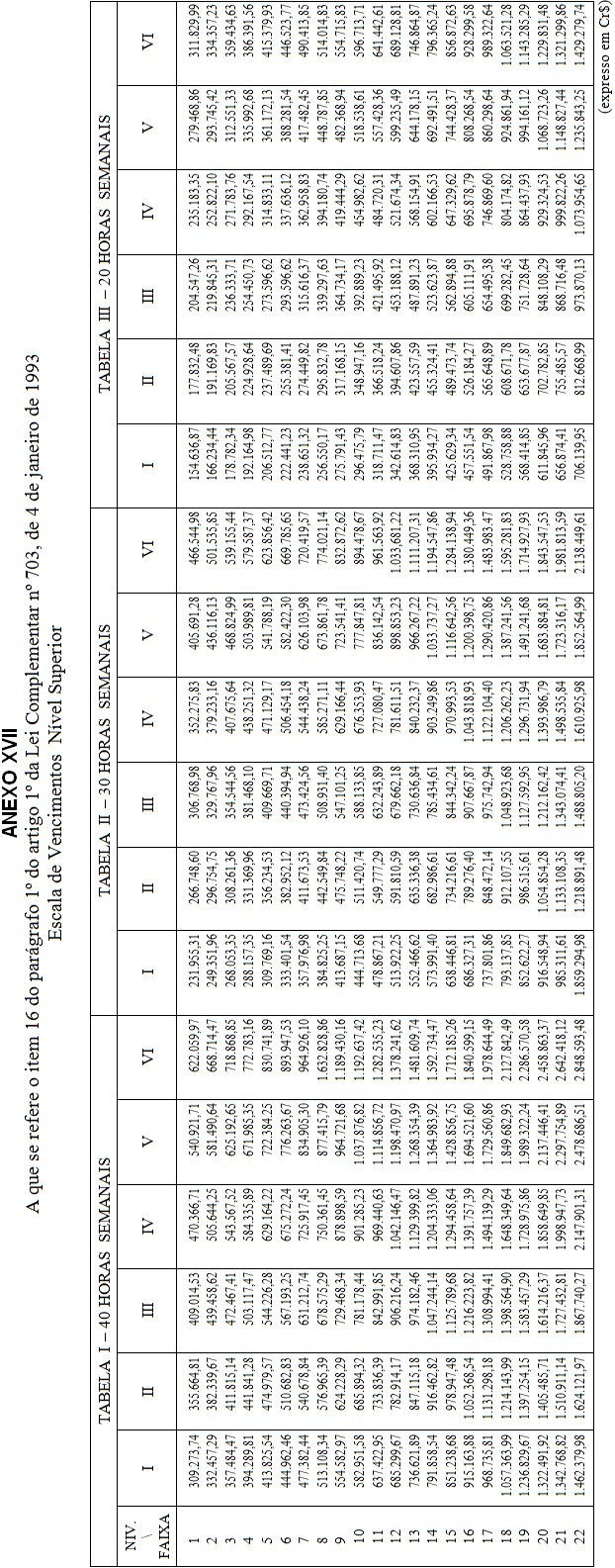 XVII e XVIII - correspondentes às Escalas de Vencimentos