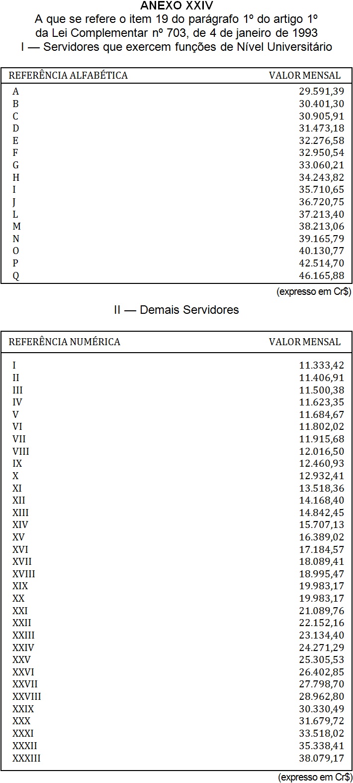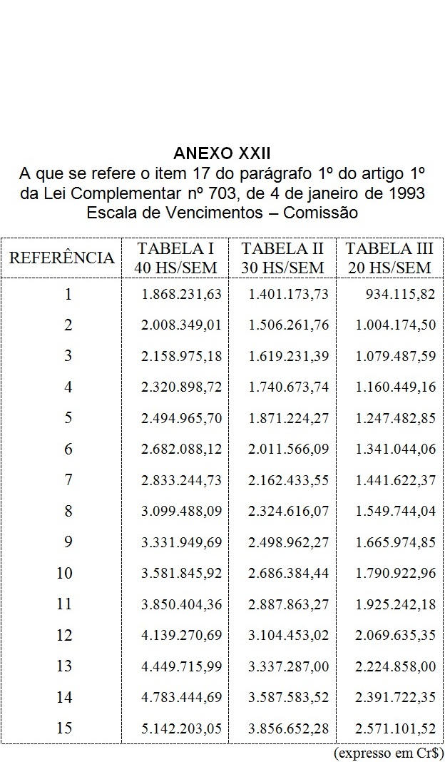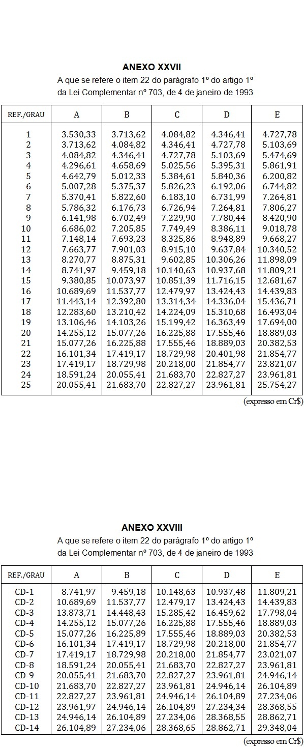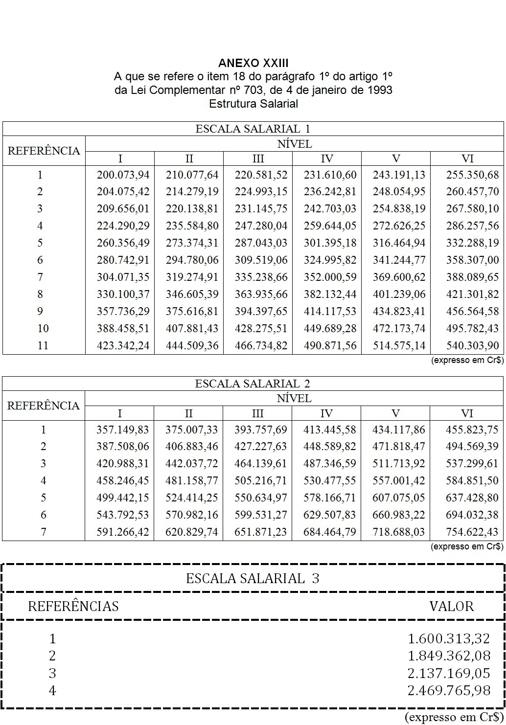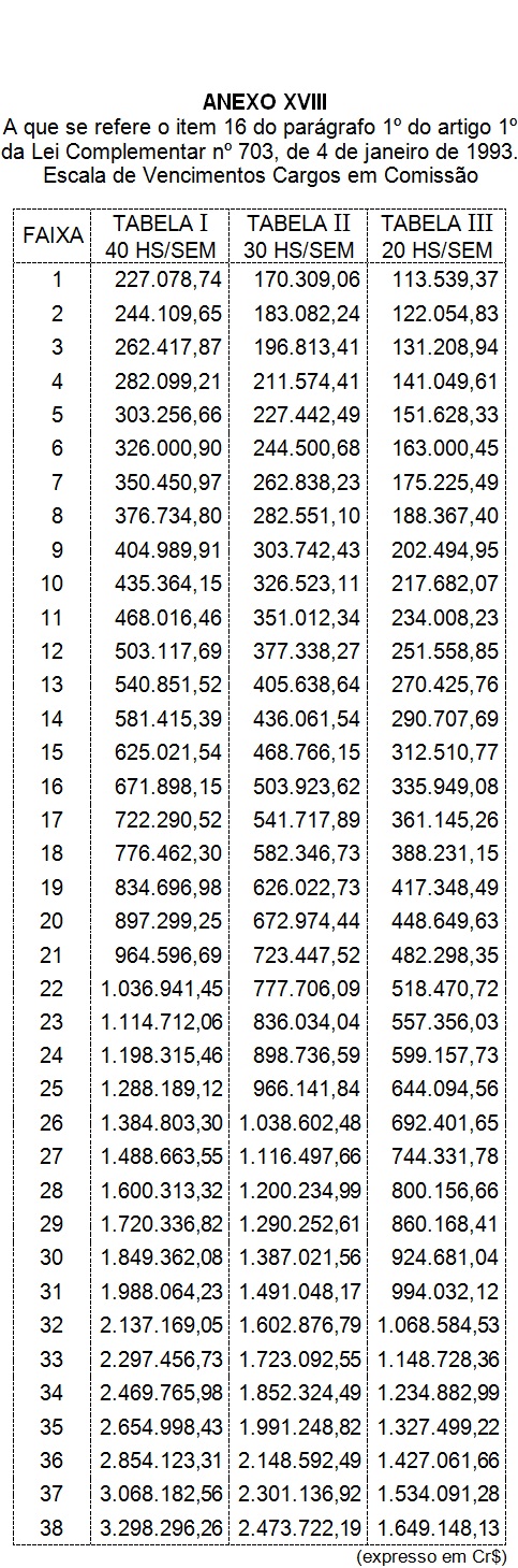 XVII e XVIII - correspondentes às Escalas de Vencimentos