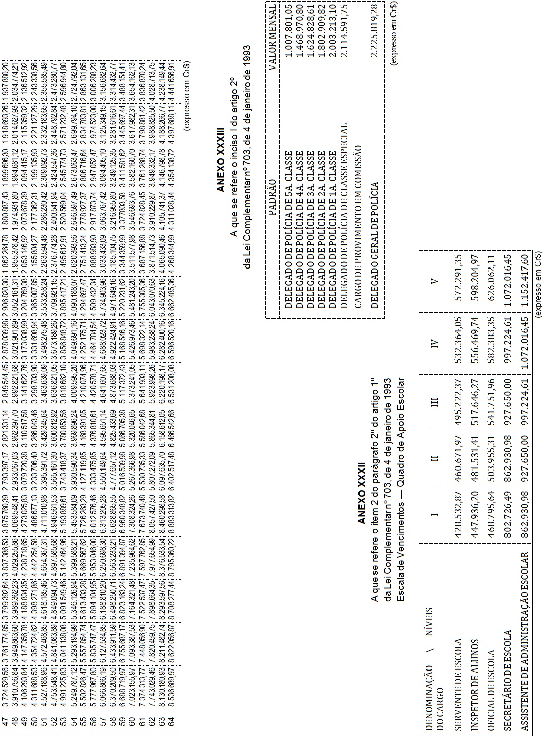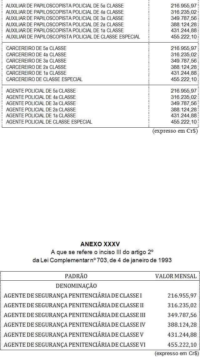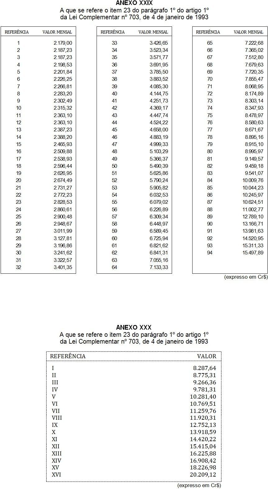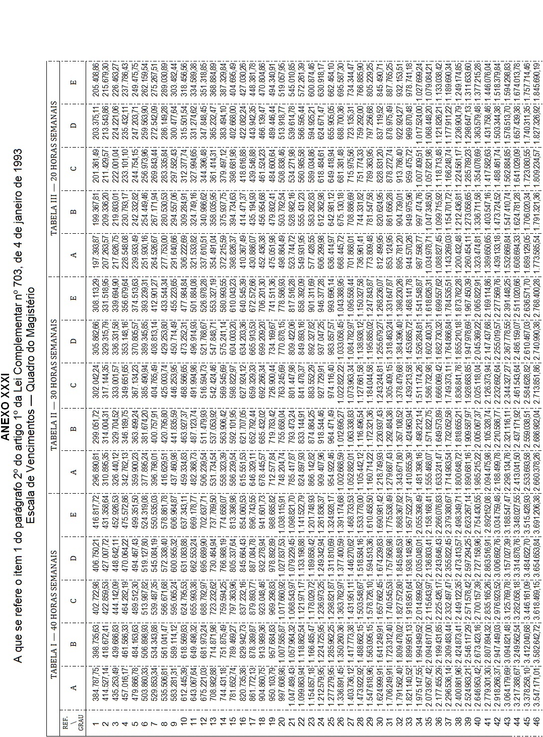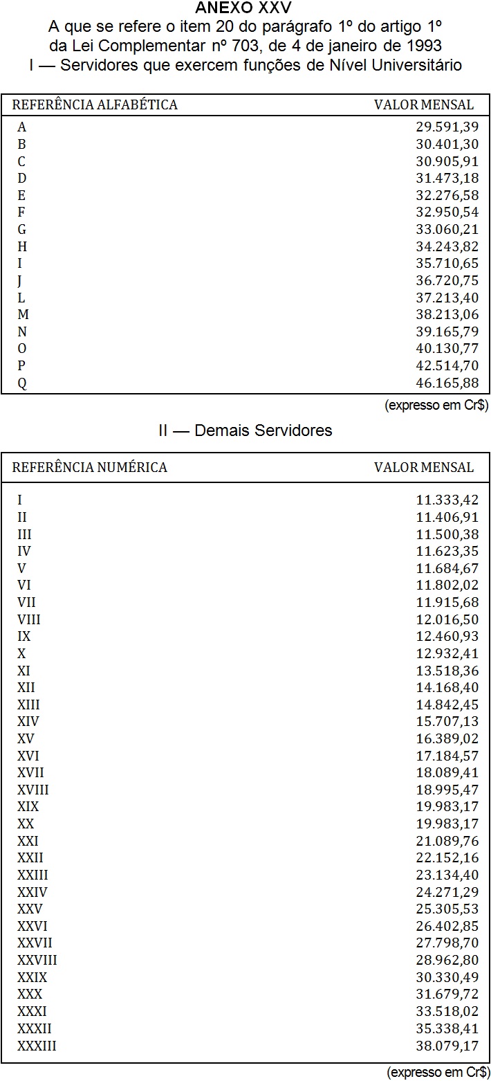 XVII e XVIII - correspondentes às Escalas de Vencimentos