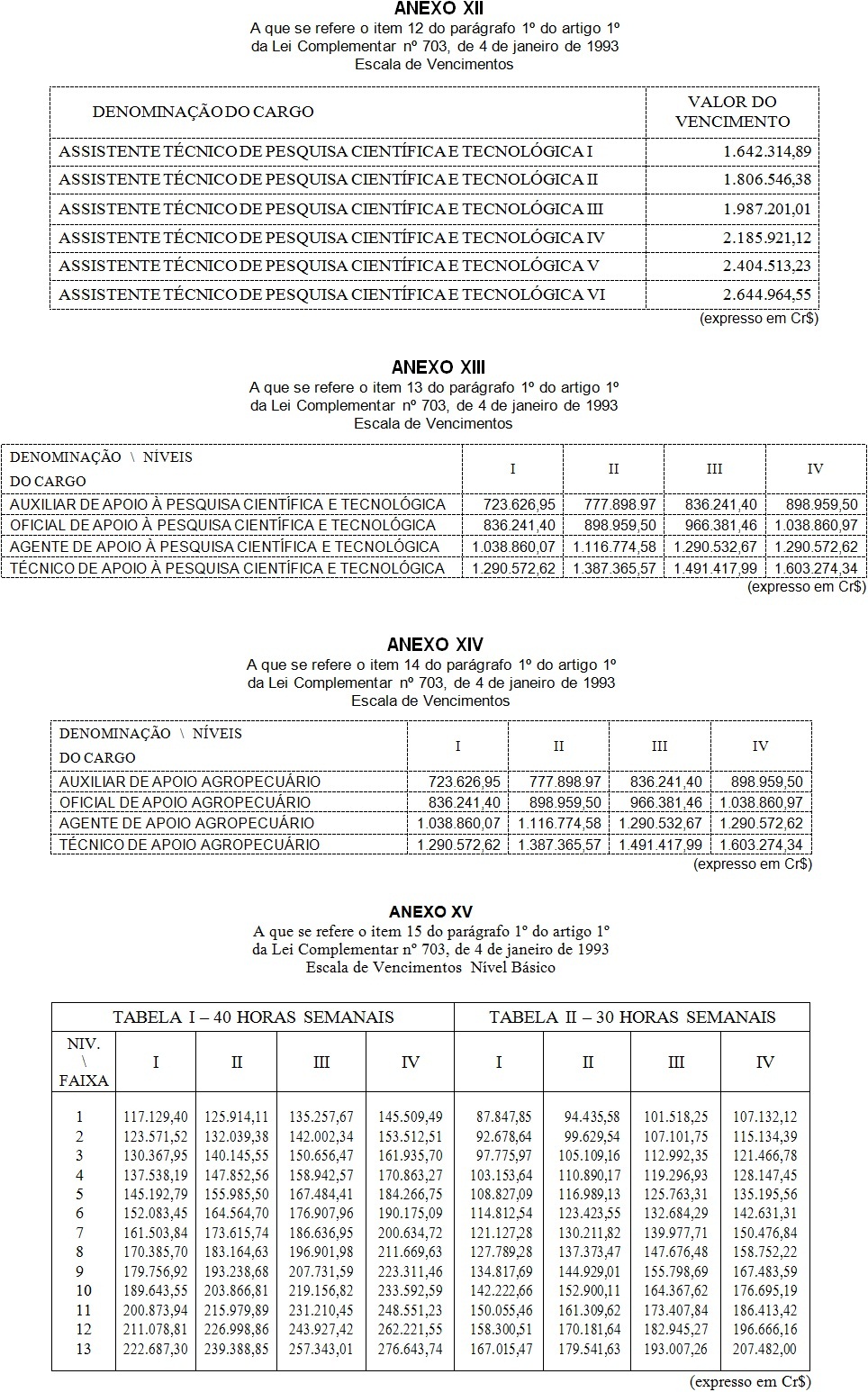 XV e XVI - correspondentes às Escalas de Vencimentos