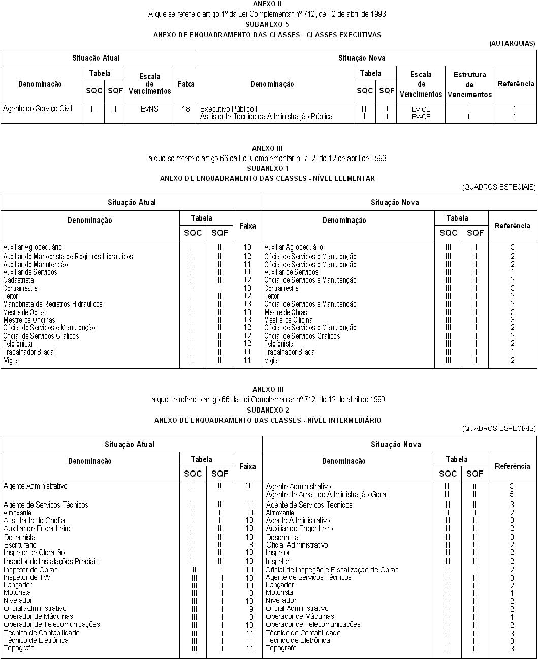 Anexos I, II e III, serão revistos e calculados na conformidade
