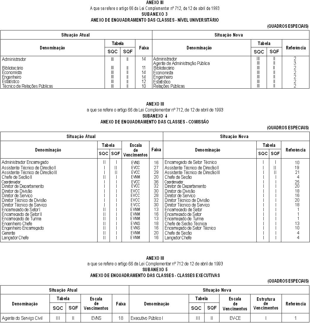 Anexo III, integrados nos Quadros Especiais instituídos pelo