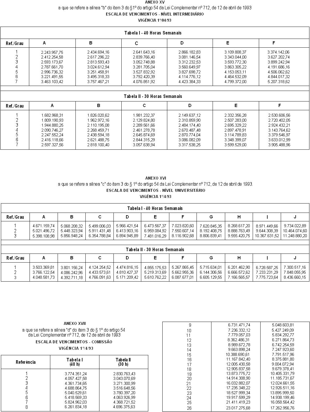Vencimentos Nível Superior, da Lei Complementar nº 556, de