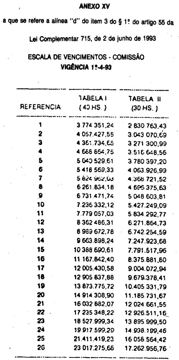 IV - Escala de Vencimentos - Comissão, constituída de 26 (vinte e seis) referências;