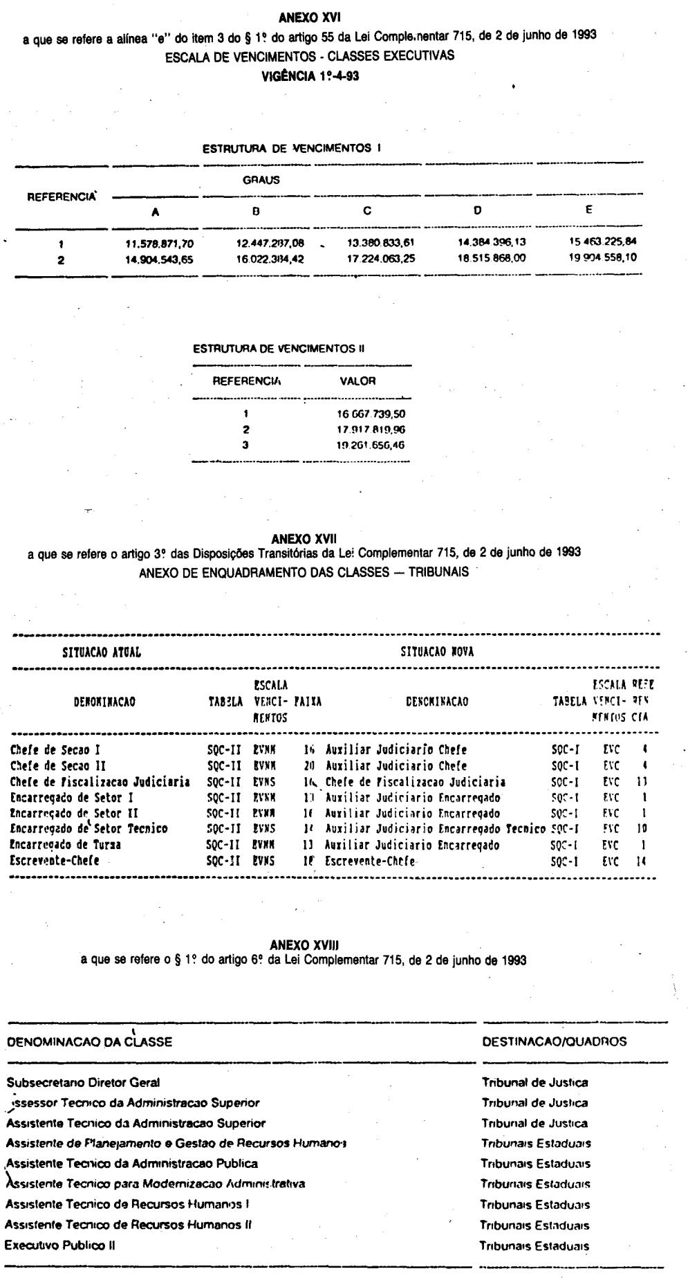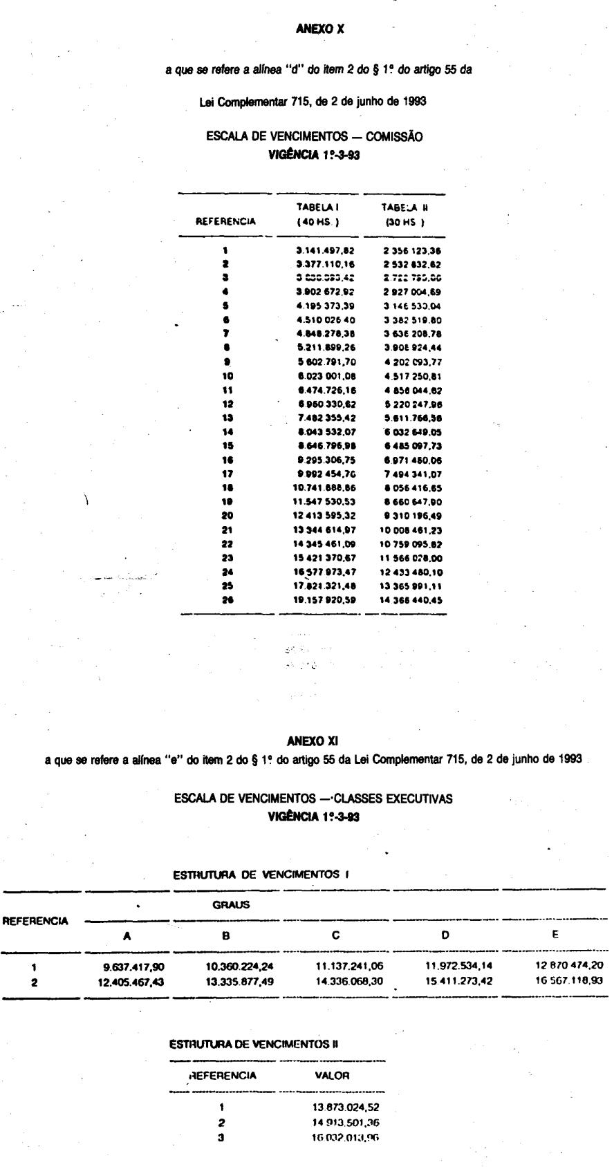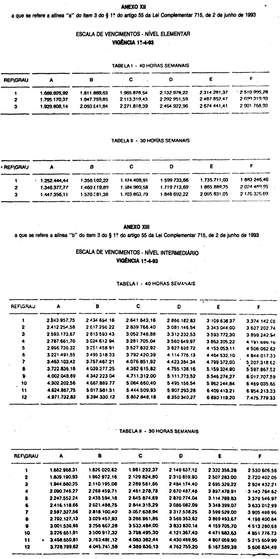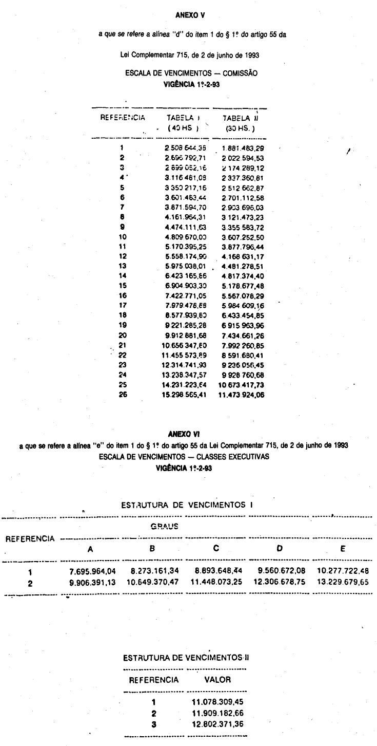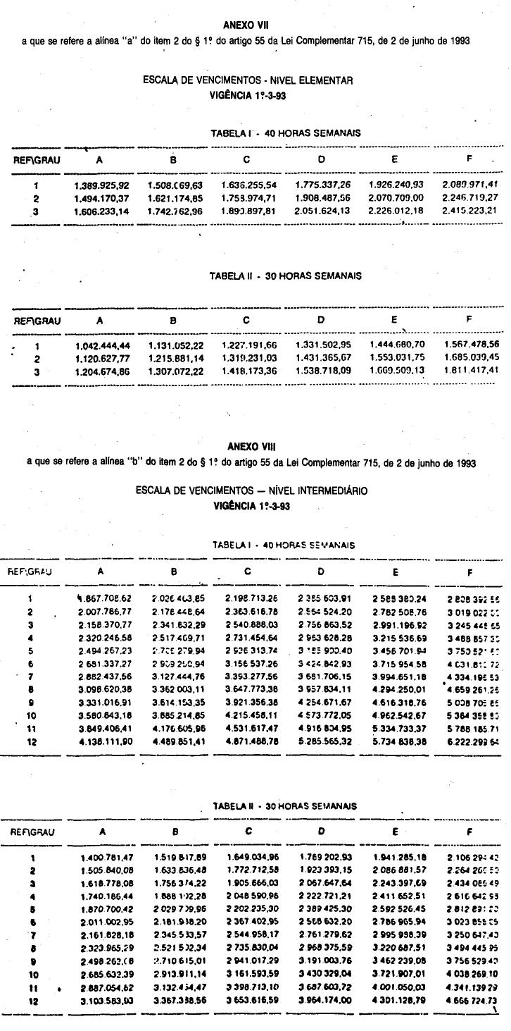 2 - em grau cujo valor, em 1º de março de 1993, seja inferior á quantia resultante da soma do valor da faixa e nível, ou do vencimento-base da respectiva classe, da gratificações fixa, instituída pelo artigo 15 da Lei 7.532, de 13 de novembro de 1991, da parcela correspondente a 1/2 (um meio) do valor da gratificação concedida em 1º de janeiro de 1993, bem como da vantagem pessoal a que aludem o § 2º do artigo 7º; § 2º do artigo 9º; § 2º do artigo 6º; § 2º do artigo 6º e § 2º do artigo 5º das Disposição Transitórias das Leis Complementares nºs 561, de 15 de julho de 1988; 562, 563, 564 e 566 de 20 de julho de 1988 ou os §§ 29 dos artigos 5º das Disposições Transitórias das Leis Complementares nºs 594, 595 e 596 de 15 de maio de 1989; § 2º do artigo 5º das Disposições Transitórias da Lei Complementar nº 600, de 19 de maio de 1989 e § 2º do artigo 4º da Lei Complementar nº 599, de 19 de maio de 1989, se for o caso, a que o servidor estiver fazendo jus em 1º de março de 1993, enquadrar-se-á o cargo ou a função-atividade, apenas para fins de pagamento do referido mês, no grau de valor imediatamente superior àquela quantia;