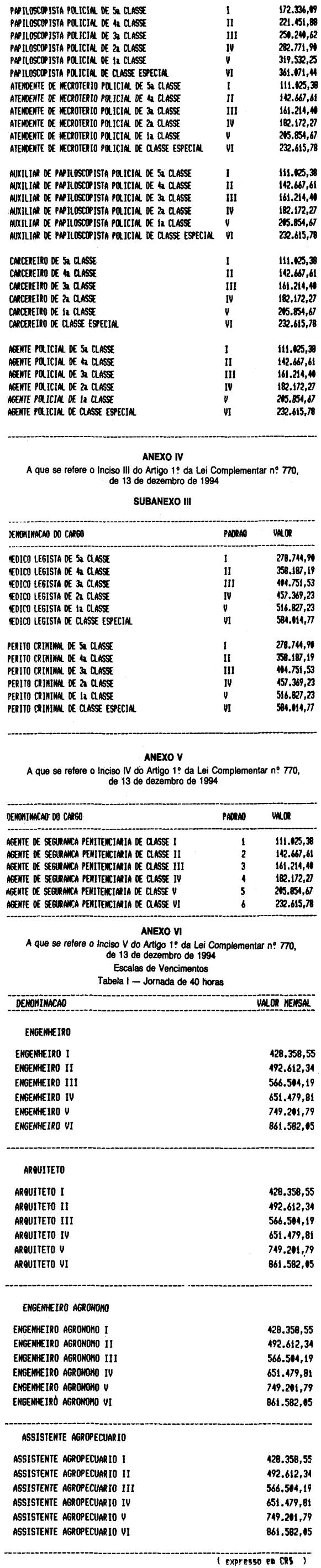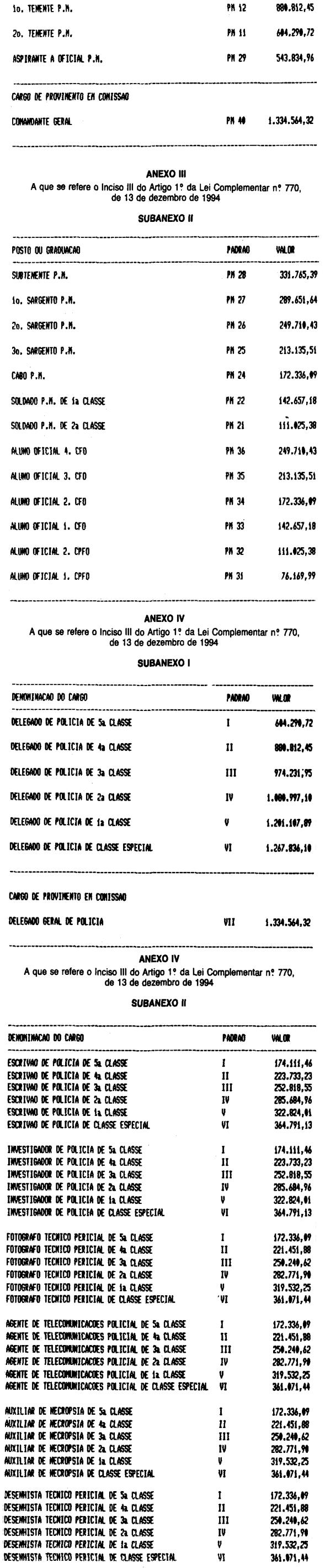 III - Anexos III e IV - correspondentes aos integrantes da Polícia Militar e da Polícia Civil, de que trata o artigo 2° da Lei Complementar n° 731, de 26 de outubro de 1993;