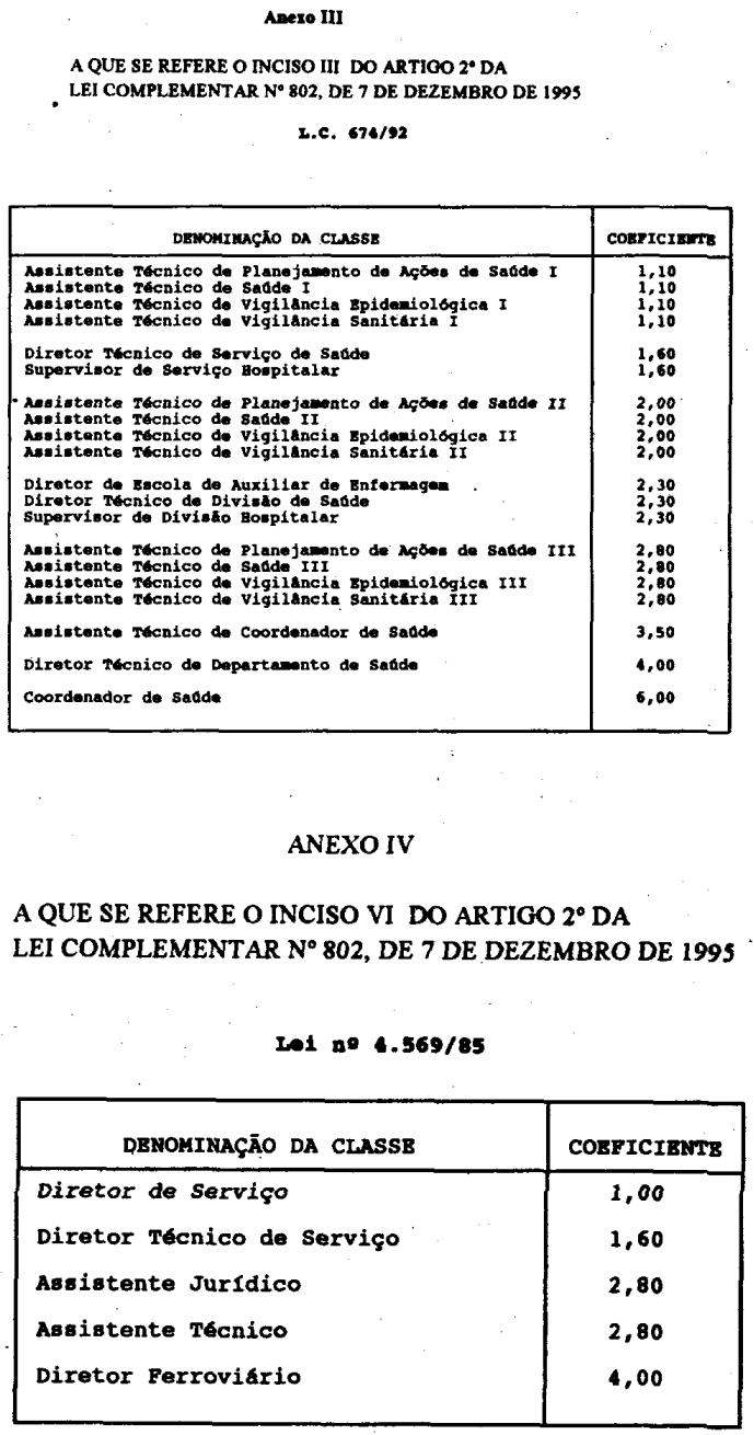 III - Anexo III, para os integrantes das classes nele referidas, regidas pela lei Complementar n.º 674, de 8 de abril de 1992;