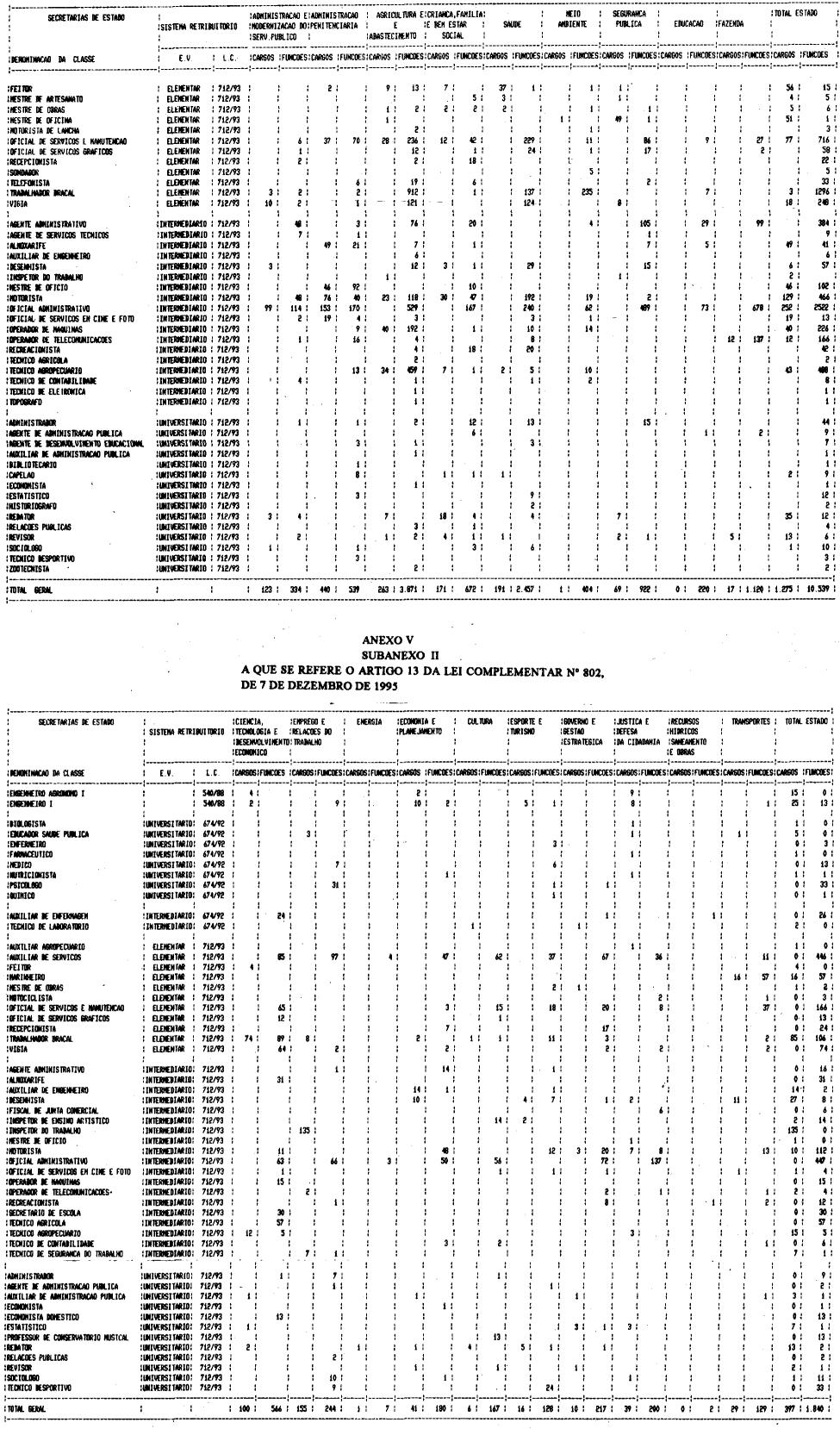 Artigo 13 - Ficam extintos, nos Quadros das Secretarias de Estado, 1.672 (um mil, seiscentos e setenta e dois) cargos de provimento efetivo, vagos, e 12.379 (doze mil, trezentas e setenta e nove) funções-atividades de natureza permanente, não preenchidas, pertencentes às classes constantes do Anexo V desta lei complementar, na forma nele prevista.