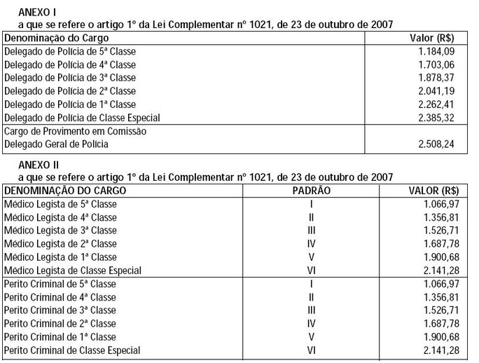 Artigo 2º - Os vencimentos dos integrantes das carreiras da Polícia Civil, de que trata o artigo 2º da Lei Complementar nº 731, de 26 de outubro de 1993, alterado pelo inciso VIII do artigo 1º da Lei Complementar nº 975, de 6 de outubro de 2005, em decorrência do disposto no artigo 1º, passam a ter os valores constantes dos Anexos I a III, que fazem parte integrante desta lei complementar.