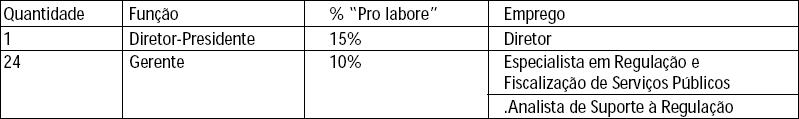 Artigo 59 - Ficam criadas as funções gratificadas adiante mencionadas, a serem retribuídas por “pro labore”, calculado mediante a aplicação de percentuais sobre o valor do salário inicial das classes correspondentes, privativas dos ocupantes dos empregos a seguir discriminados: