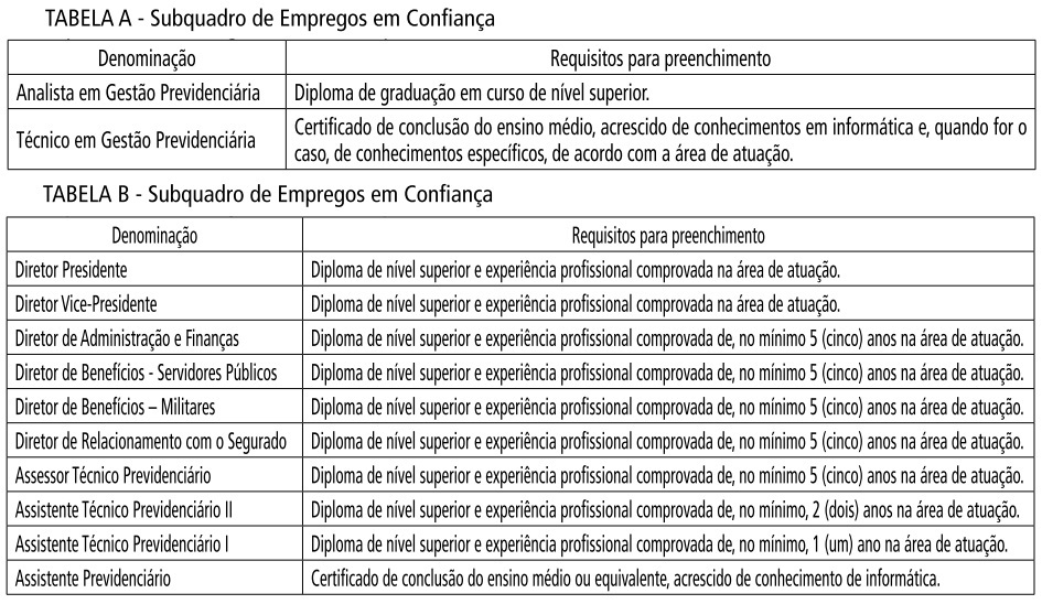 Parágrafo único - Os requisitos mínimos para preenchimento dos empregos públicos permanentes e em confiança de que trata este artigo ficam estabelecidos na conformidade das Tabelas A e B do Anexo II desta lei complementar.