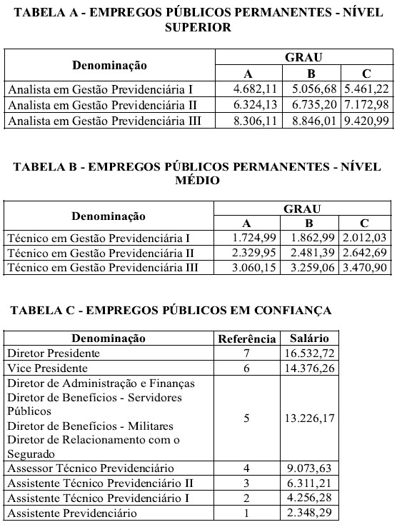 - Tabelas A e B do Anexo I com redação dada pela Lei Complementar nº 1.162, de 26/12/2011, produzindo efeitos pecuniários a partir de 01/08/2011.