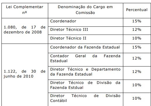 § 1° - Na hipótese da opção de que trata o "caput" deste artigo, o servidor fará jus a gratificação "pro labore" calculada mediante a aplicação de percentuais incidentes sobre o valor correspondente aos vencimentos da Classe I, Nível 1, da carreira de Especialista em Políticas Públicas e de Analista em Planejamento, Orçamento e Finanças Públicas, na seguinte conformidade: