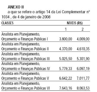 Artigo 4° - As carreiras de Especialista em Políticas Públicas e de Analista em Planejamento, Orçamento e Finanças Públicas são constituídas, respectivamente, de 6 (seis) classes, identificadas por algarismos romanos de I a VI, com 2 (dois) níveis de retribuição cada uma, escalonadas de acordo com as exigências de maior capacitação para o desempenho das atividades de que tratam os artigos 2° e 3° desta lei complementar.