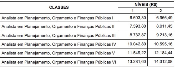 | Especialista em Políticas Públicas V | 6.642,22 | 7.011,77 |