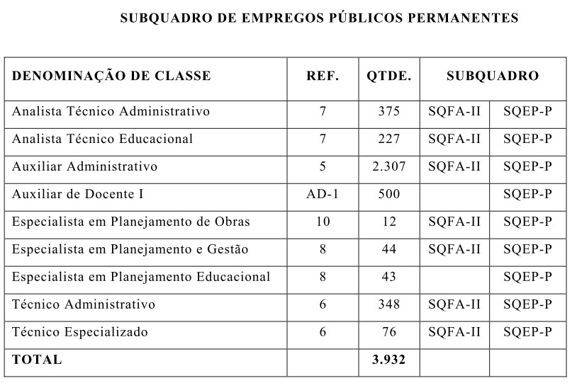 SUBQUADRO DE EMPREGOS PÚBLICOS EM CONFIANÇA