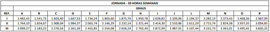 ESCALAS SALARIAIS - EMPREGOS PÚBLICOS PERMANENTES